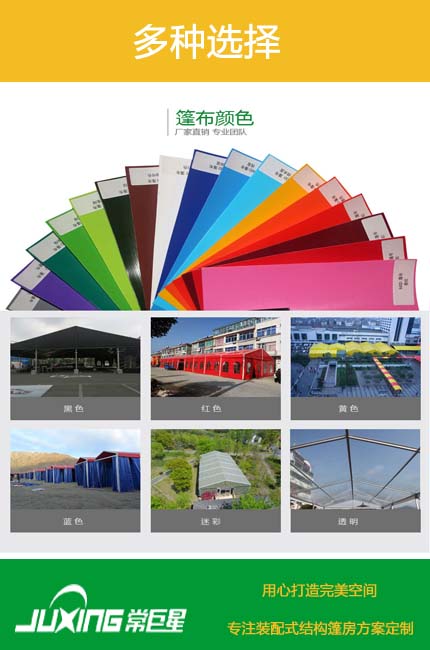 4. 篷房規(guī)格主要有:600g/m2 、650g/m2 、750g/m2 、850g/m2 、900g/m2 等;
